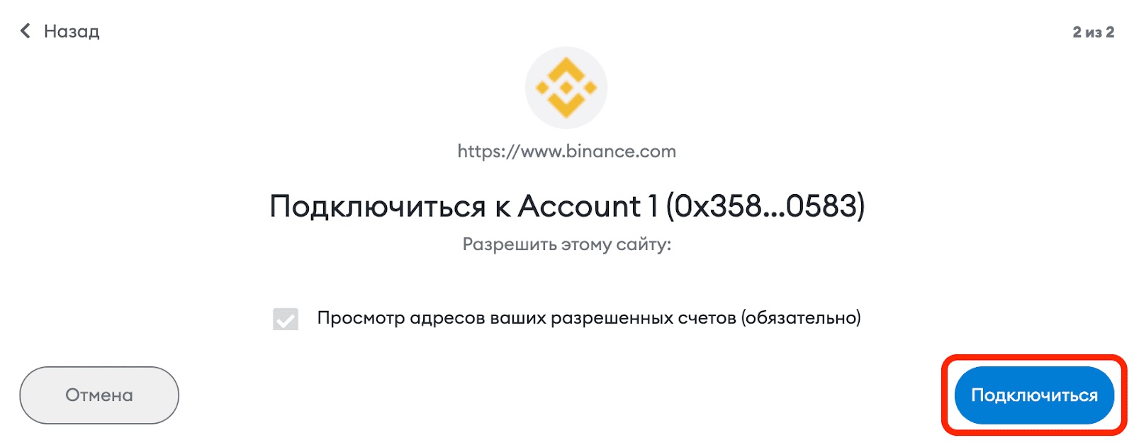 - Это перенаправит вас на страницу синхронизации кошелька с платформой Binance NFT. Если вы уже подключили кошелек к платформе, переходите к пункту 7.